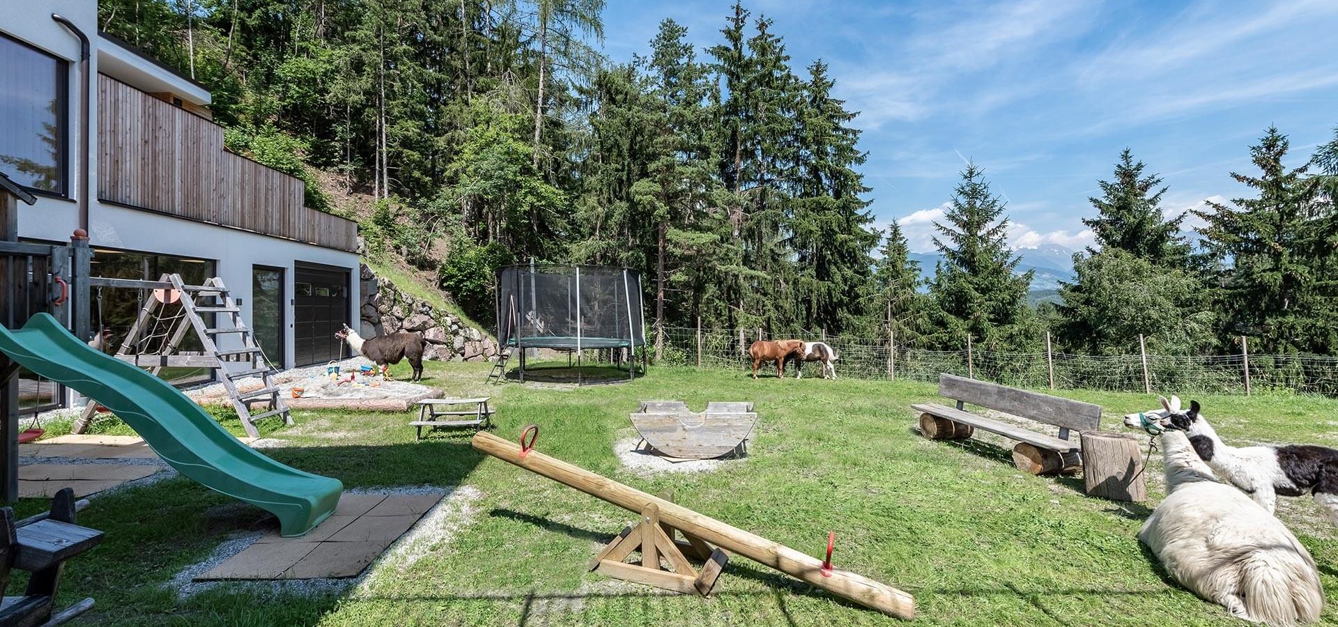 Are you travelling with bag and baggage and would like to spend your family holiday at Brixen in the Eisack valley? As a family hotel in South Tyrol, we offer you not only spacious rooms, apartments and holiday apartments for the special needs of families – we will come towards you as far as possible during your holidays with your children, so that you can carefree enjoy all together the holiday in front of the Dolomites. Our apartments have well-equipped children’s rooms. And for your children up to 14 years of age we offer you attractive discounts on accommodation costs. Your children will find toys and gaming devices in our house or in the garden. As a special attraction in our children’s hotel in South Tyrol, we have our farm animals – for example our friendly lamas