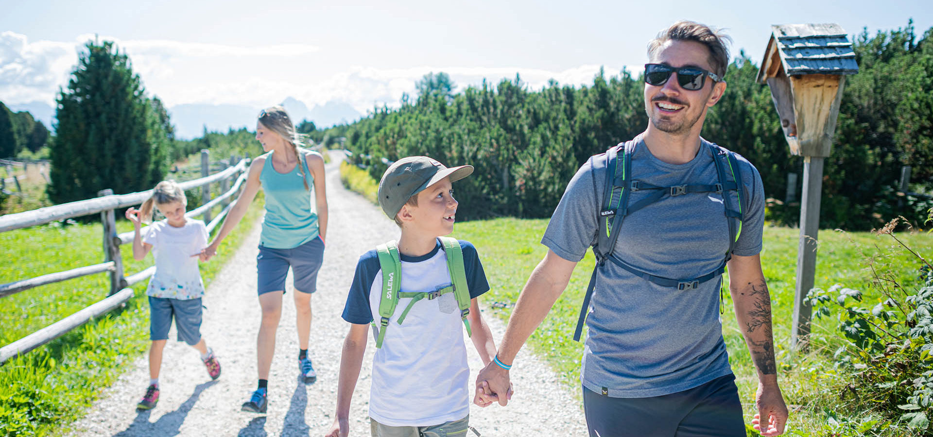 Get on the wooden path! At the Plose mountain station, the route to Rossalm – named WoodyWalk – begins alongside other worthwhile hiking trails. The difference in height is only 100 m, so that the 4-km-tour belonging to the Dolomites panorama path can be walked quite relaxed and even with the baby carriage. Along the idyllic trails are built wooden playstations, from which also the name WoodyWalk derives. The many possibilities to play are also presented very entertaining, are educational and surprising. They carry such witty names as “Plose thunderbolt”, “wood telephon”, “Viking ship” or “non-the-ground-touch-way”. And while the children have a lot of fun, you can enjoy the wonderful view of the Dolomites with the Peitlerkofel, the Aferer and the Villnössler Geisler in your family holiday at Brixen.