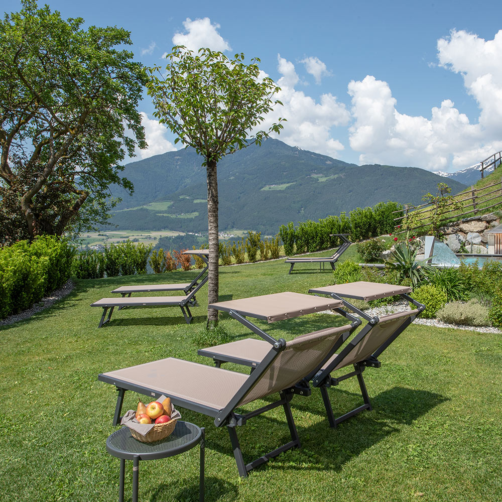 The sun over South Tyrol means well with the Eisack valley. Our region is not for nothing known for its many sunny days, which you cannot only use outdoor in nature, but also at our house. After a strenuous mountain tour or as a relaxing break in-between you can relax on our large lawn at your heart’s content. Enjoy the wellness in the Dolomites with a book on one of the sun loungers, let your eyes wander to the blue shimmering mountains and enjoy the incomparable light, the warmth, the natural energy at the bottom of the Plose.