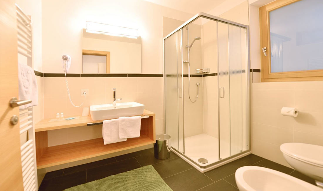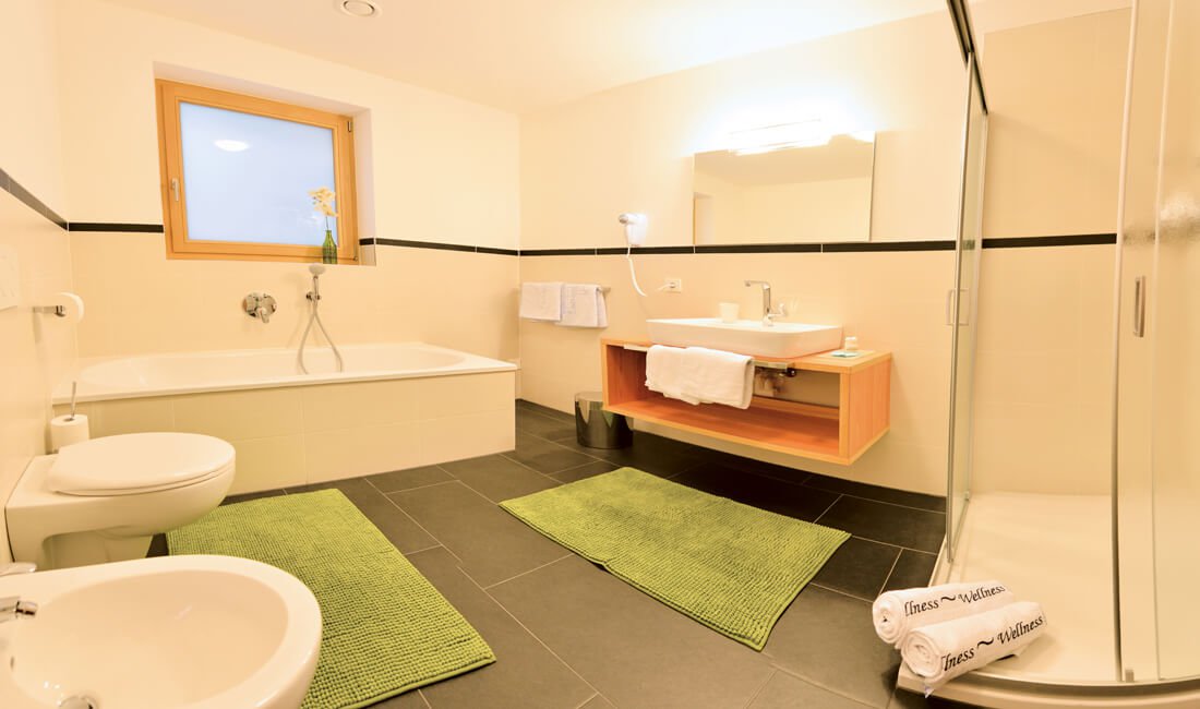 • Bad mit Dusch/WC, Bidet, Badewanne, und Föhn