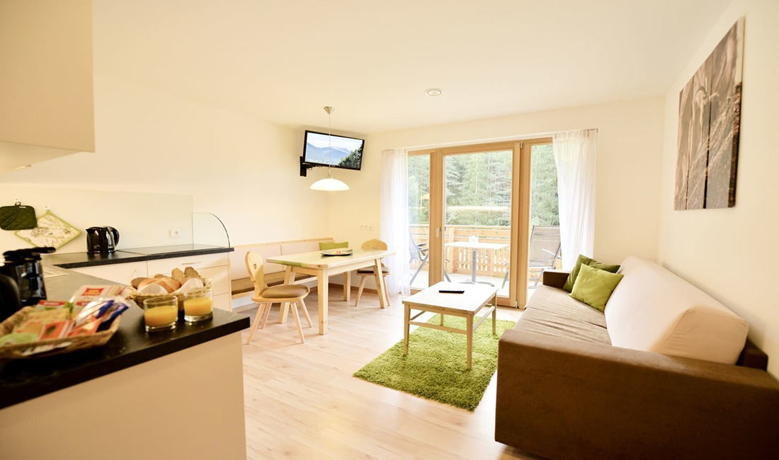 Im Apartmenthaus Fuchsmaurer befinden sich 5 individuelle Ferienwohnungen von bis zu    70 m2 Größe, mit   gediegener Möblierung  und einer   lückenlosen KüchenAusstattung  mit Kochfeld, Mikrowelle, Toaster, Kaffeemaschine, Spülmaschine Geschirr sowie Geschirrtüchern. Die Doppelzimmer verfügen über   Doppelbetten. Weiterhin haben unsere Ferienwohnungen bei Brixen gemütliche   Sitzecken, eine   Couch, FlachbildschirmSat-TV  und einen   Safe. Bettwäsche sowie Hand- und Badetücher liegen ausreichend bereit. Das Bad ist mit Dusche/WC, Bidet, Föhn und z.T. mit Badewanne ausgestattet.