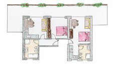 1 Ferienwohnung Andreas + 2 Ferienwohnungen Monolokal + 2 Ferienwohnungen Bilokal, sowie einen Spielraum, einem Hobbyraum und eine Sauna mit Ruheraum.