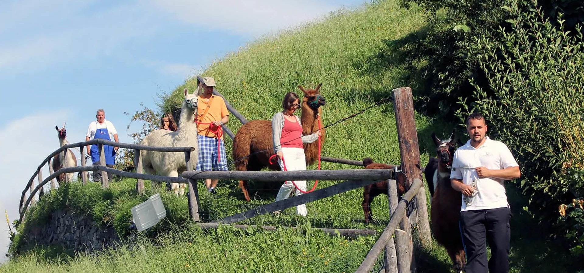 I nostri lama non solo conquisteranno il cuore dei più piccoli in men che non si dica. Ciascuno di loro ha un nome: Maia, Margarita, Max … Se voi o i vostri figli li chiamerete per nome, si avvicineranno con fiducia, rosicchiando dalle vostre mani le leccornie che avete portato con voi. Tra l’altro non dovrete assolutamente preoccuparvi che i nostri lama sputino. Questo è un comportamento che adottano esclusivamente come forma di difesa e per far rispettare la gerarchia all’interno del branco. Al contrario i lama sono estremamente docili e vengono impiegati nella pet-therapy. Alcuni traumi o altre condizioni psichiche possono essere risolti con il sostegno di un lama pacifico e bonario. Come autentico hotel in Alto Adige utilizziamo invece la fitta lana dei nostri lama, il fatto che questi tranquilli animali delle Ande abbiano influssi positivi su corpo e anima, lo percepiamo ogni giorno e desideriamo che anche voi abbiate modo di scoprirlo.