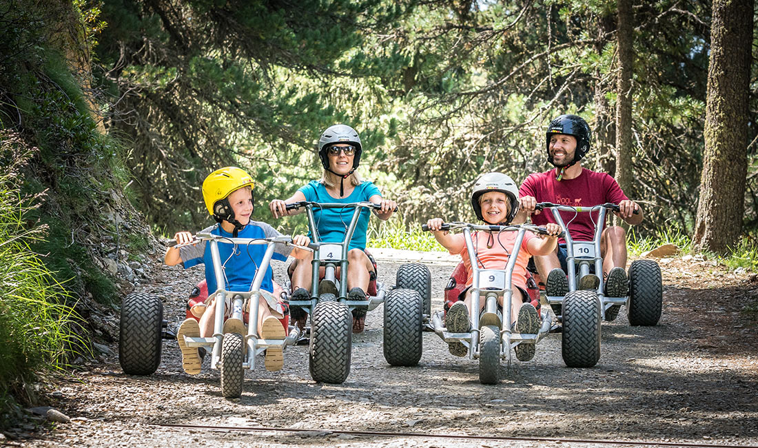 Un bel divertimento non solo per i vostri bambini: prendete a noleggio i mountaincarts e fate una gitarella sulla Plose! Alla guida di uno di questi bolidi a tre ruote vi godrete la nostra montagna locale da una prospettiva completamente nuova, a tutta velocità, come non è propriamente solito per una vacanza estiva in montagna. Il percorso di 10 km dalla stazione a monte fino alla stazione a valle è particolarmente divertente. La cosa curiosa dei mountaincarts è che non hanno pedali, in questo modo sarete voi personalmente a regolare la velocità e naturalmente anche a frenare, solo se lo volete! Ma non preoccupatevi: questi piccoli e divertenti carts, molto stabili, con due ruote larghe e una stretta sono estremamente adatti alle uscite nelle Dolomiti e sono molto sicuri.