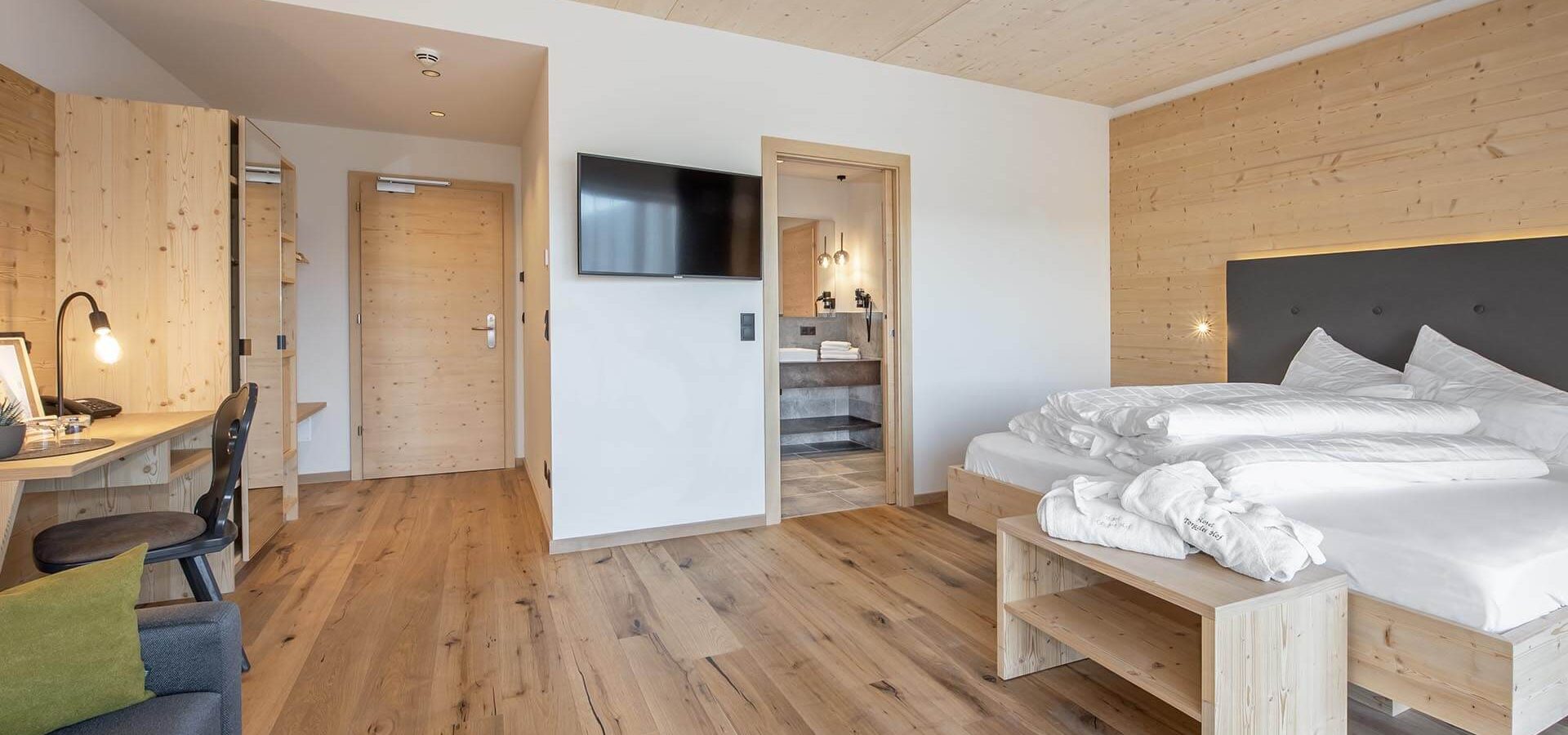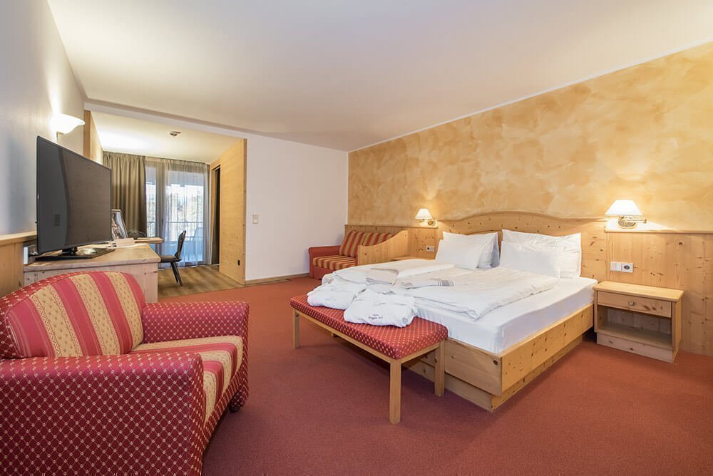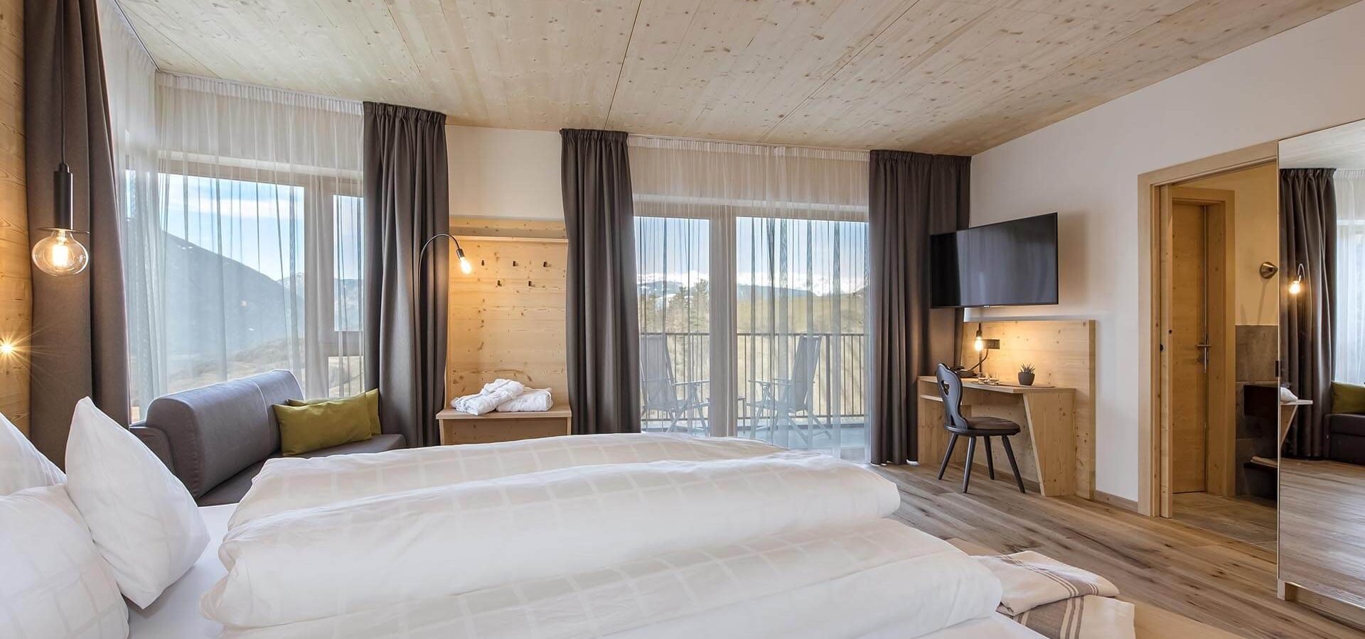 Unsere Zimmer an der Plose bieten Ihnen mit 16 bis 35 m2 viel Platz für einen unbeschwerten Urlaub. Sie sind sehr gemütlich eingerichtet und erzeugen mit der reichlichen Holzausstattung und den warmen Farben ein alpines Flair, das Sie angenehm umfangen wird. Auch die weitere Ausstattung lässt keine Wünsche offen: Jedes Zimmer verfügt selbstverständlich über Dusche/WC, Fön, Telefon, Sat-TV, W-LAN und einen Safe. Vom Balkon Ihres Hotelzimmers aus haben Sie einen prächtigen Panoramablick. Die Zimmerkategorien tragen übrigens die Namen „Enzian“, „Edelweiß“ und „Alpenrose“ – es sind die Gebirgspflanzen, deren Blütenteppiche auf der Plose Sie je nach Jahreszeit bewundern können.