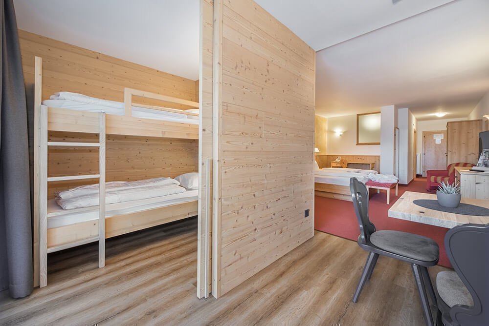 Sie wünschen sich noch mehr Freiraum für Ihre Familie oder Ihren Ferien-Freundeskreis? Unsere 3 Familienzimmer sind bis zu 110 m2 groß und damit die perfekte Unterkunft für bis zu 12 Personen. Hier können Sie es sich mit Ihren Kindern oder Reisegefährten bequem machen und auch längere Ferien verleben.